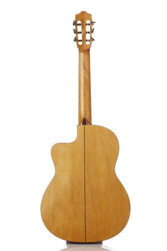 Solid European Spruce top, Spanish cypress back and sides, Rosewood fingerboard, bridge and binding, natural high gloss PU finish, 50mm nut width, 650mm scale length, cutaway with Fishman Presys Blend, Savarez Cristal Corum strings. Includes Cordoba's deluxe padded gig bag with backpack style straps.