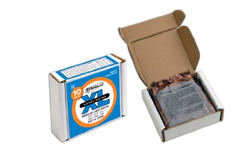EXL110, D'Addario's best selling set, offers the ideal combination of tone, flexibility and long life. The standard for most electric guitars. The convenient D'Addario Frustration-Free packaging is fully recyclable and can ship safely in its own box, eliminating unnecessary cardboard boxes and packaging. Buy 10 sets and save with D'Addario Frustration-Free packaging! XL Nickel Wound, D'Addario's most popular electric guitar strings, are precision wound with nickelplated steel onto a carefully drawn, hexagonally shaped, high carbon steel core. The result, strings with long lasting, distinctive bright tone and excellent intonation, is ideal for the widest variety of guitars and musical styles.D'Addario, the world's largest manufacturer of musical instrument strings, is known as The Players Choice with a reputation for unsurpassed quality and consistency. D'Addario's innovative packaging reduces waste and provides protection from corrosion. All D'Addario strings are manufactured in the U.S.A. using proprietary, digitally controlled, state-of-the-art machinery for unmatched performance, set after set.