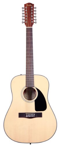 New and improved for 2011. The CD-100 12-String dreadnought delivers lush, resonant Fender 12-string sound and value, with a natural-finish solid spruce top and mahogany back and sides. Upgrades include a new black pickguard and mother-of-pearl acrylic rosette design, new compensated rosewood bridge design, white bridge pins with black dots and smaller (3mm) dot fingerboard inlays. Features include 20-fret rosewood fingerboard and chrome die-cast tuners
