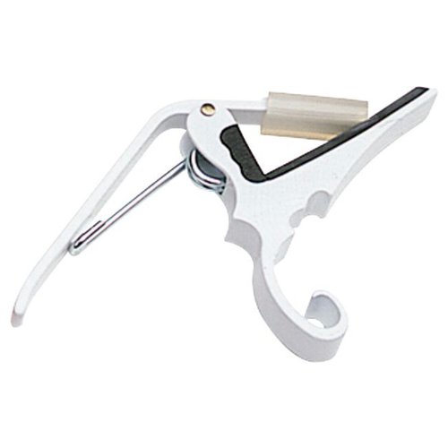 Kyser 6 Strings Guitar Capo KG6. A perfect fit for the necks and fingerboards of acoustic 6-string guitars. A snap to park on the headstock and then reposition between frets using just one hand. The music world's most popular quick release capo this quick-change Capo is made of strong light-weight aluminum. The spring tensioned Quick-Change clamps firmly to hold intonation but is quickly and easily released and repositioned without disturbing the tuning. You can operate your Quick-Change comfortably with one hand.