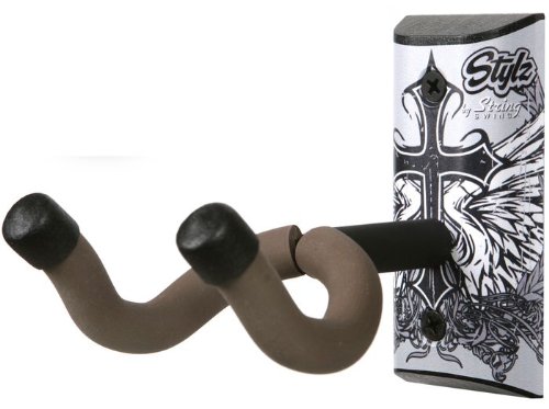 Put your guitar, bass, or other stringed instrument on display where it belongs, with the String Swing Stylz Guitar Keeper guitar hanger! Perfect for acoustic or electric guitars and basses, as well as mandolins, banjos, and ukuleles, the String Swing Stylz Guitar Keeper won't damage your instrument's neck. There's enough clearance from the wall to accomodate larger instruments, and the custom finish looks great in your studio. Keep your instruments ready to go, by hanging them on the String Swing Stylz Guitar Keeper guitar hanger!