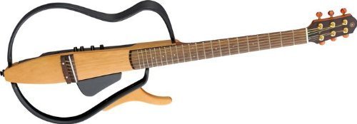 The Yamaha SLG110S Silent Acoustic-Electric Guitar is the perfect choice for quiet practice. With the guitars sound running through headphones, you can play and experience the realistic sounds of an acoustic steel-stringed instrument. The Yamaha silent guitar features a lightweight maple body, with a detachable upper frame for portability. The neck is constructed from mahogany, and features a rosewood fingerboard. The Silent Guitar acoustically produces only 1 1/10th the amount of sound volume; which makes the SLG110S great for playing anytime or anywhere.