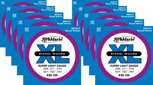 This 10 pack of D'Addario EXL120 are the player's choice for super light Electric Guitar strings! These strings are wound with nickel pated steel and are known for their distinctive bright tone and excellent intonation. These sets are ideal for musicians of any level and make a wonderful gift! Gauges: 0.009, 0.011, 0.016, 0.024, 0.032, and 0.042