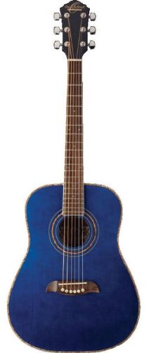 OSCAR SCHMIDT makes nice guitars. This one looks sharp in transparent blue. Nice string set up and sounds great. I like the 3/4 size body. Good price from AUSTIN BAZAAR!
