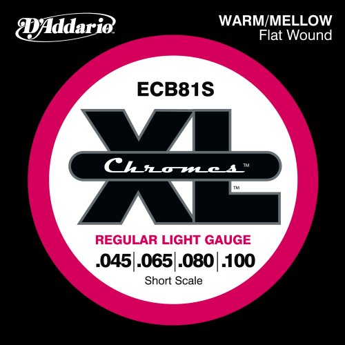 D'Addario Chromes are OK flatwound strings, though they're a high-tension string, about the same as their XL's (roundwounds) in the department. Unfortunately, the short-scale set did not fit my Guild Starfire bass (much too short!). It wasn't just a case of buying the wrong set like an idiot, either. The long-scales fit better but not perfectly, and these short-scale Chromes don't even fit a Fender Mustang bass OR a violin bass-- I tried them with both those instruments in an effort to get some use out of these strings.