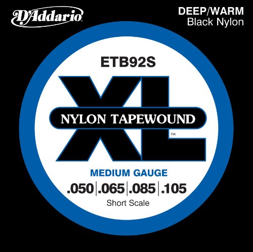 ETB92S is the short scale version of the popular ETB92 black nylon tapewound bass set. ETB92s offers the ideal combination warm, deep tones with a smooth feel. Fits short scale basses with a string scale length of up to 32 inches.Designed to produce a deep, warm tone with smooth feel, D’Addario Tapewound Bass strings are wound using a flattened black nylon which is polished to an ultra-smooth finish. These long-lasting, well-balanced strings are expertly engineered to provide optimal tension and are gauged to fit properly on standard bass saddles and nuts. Tapewounds may be used on fretted or fretless basses and are designed to deliver a vintage tone ranging from the “thump” of an upright bass to the focused depth of traditional flatwound strings. D'Addario, the world's largest manufacturer of musical instrument strings, is known as "The Players Choice" with a reputation for unsurpassed quality and consistency. D'Addario's innovative packaging both reduces waste and provides protection from corrosion. All D'Addario strings are manufactured in the U.S.A. using proprietary, digitally controlled, state of the art machinery for unmatched performance, set after set.